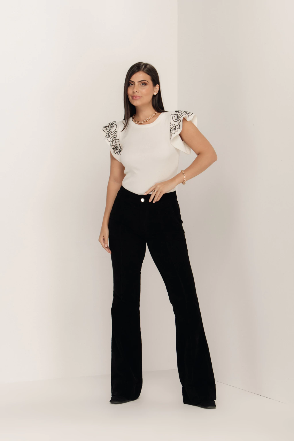 CALÇA COTELÊ MICHELLE é a escolha perfeita para quem busca estilo e conforto no inverno! Confeccionada em veludo cotelê, possui modelagem flare e cós médio, essa calça valoriza a silhueta e proporciona liberdade de movimento. Conta com bolsos laterais e na parte de trás tornando-a super prática para o dia a dia.