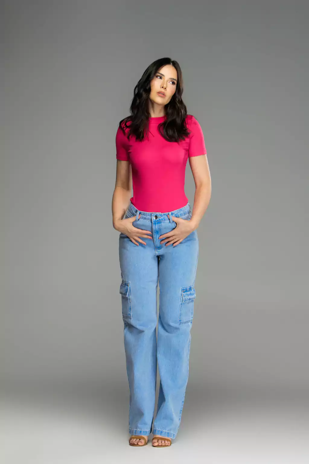 CALÇA KAYLA conta com moelagem wide leg super fashion. Com cintura alta e bolsos cargos laterais, proporicona visuais confortáveis que vão bem em diversas ocasiões. Sua modelagem aliada alvagem clara e leve, traz um toque moderno para as produções.