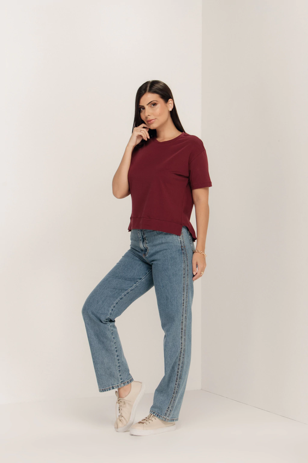 Com jeans 100% algodão, ela proporciona uma sensação agradável ao toque e durabilidade excepcional, ideal para qualquer ocasoão. Conta com bolsos frontais e traseiros adicionando funcionalidade e praticidade, passantes para cinto, ziper e abotoamento na cor prata. Detalhes em costuras laterais com pespontos caramelo trazem mais charme a peça.