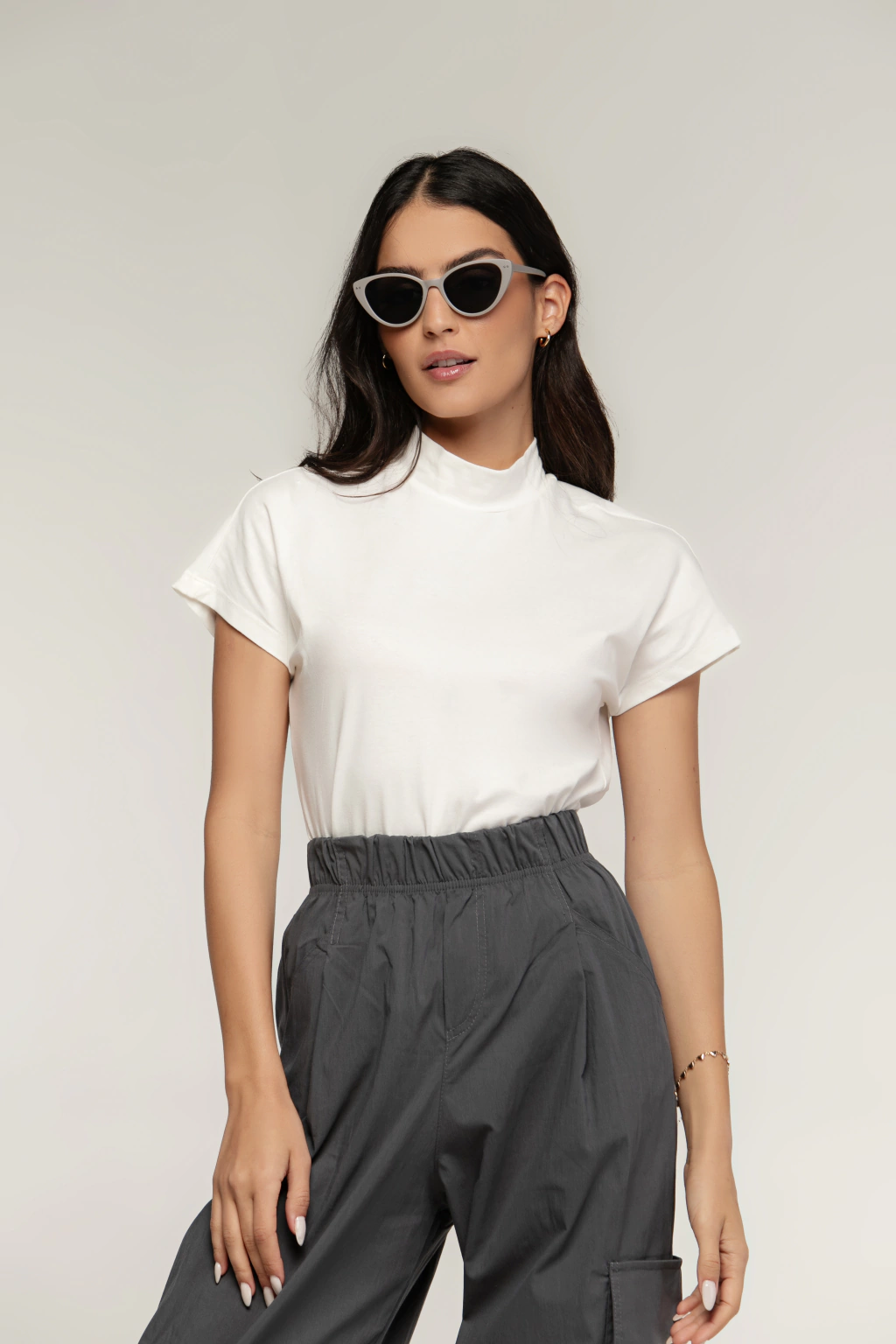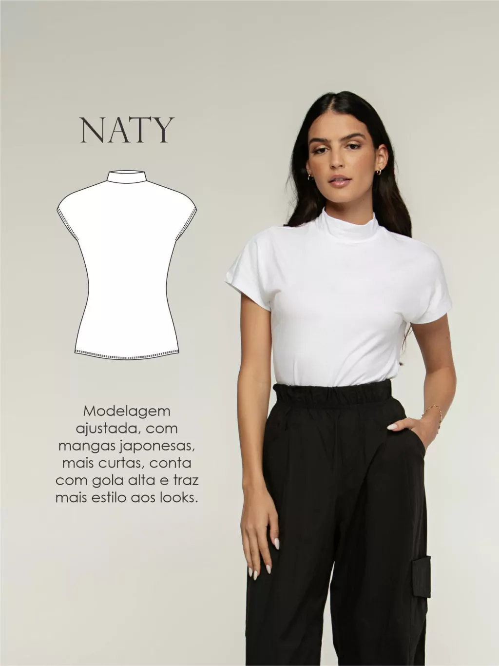CAMISETA NATTY a peça que faltava em seu guarda-roupas, com a modelagem ajustadinha, mangas japonesas e gola alta, a blusa natty promete te entregar looks estilos. Além disso, esta peça é confeccionada em algodão egpicio, o que trará conforto e qualidade para as suas produções.