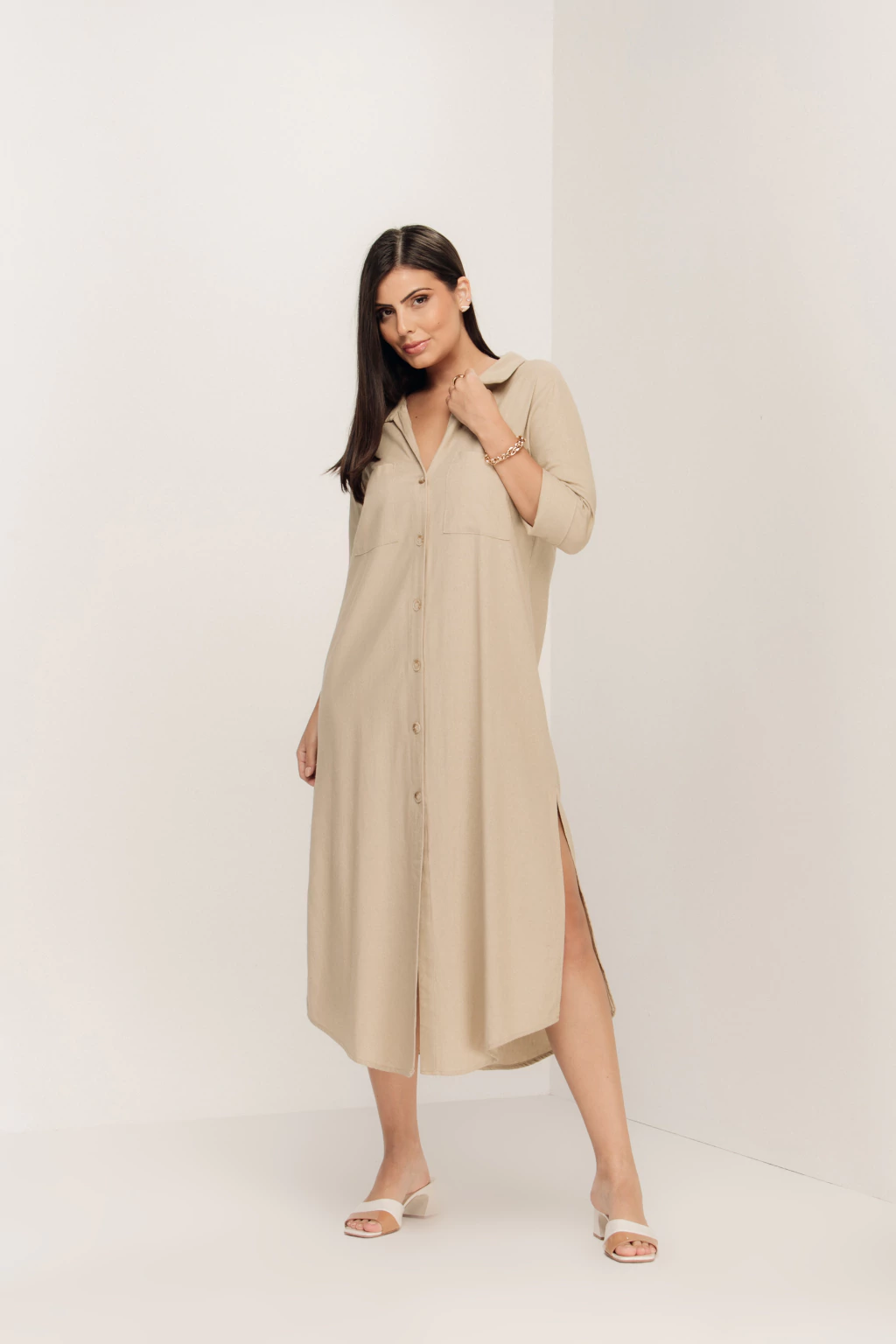 CHEMISE GICELDA garante visuais elegantes com leveza, estilo e conforto. Com shape soltinho, ela pode também ser combinada com cintos para looks mais despojados. Com bolsos frontais e fendas laterais, ela pode ser combinada com shorts e calças ou ainda ser usada como sobreposição ou saída de praia.