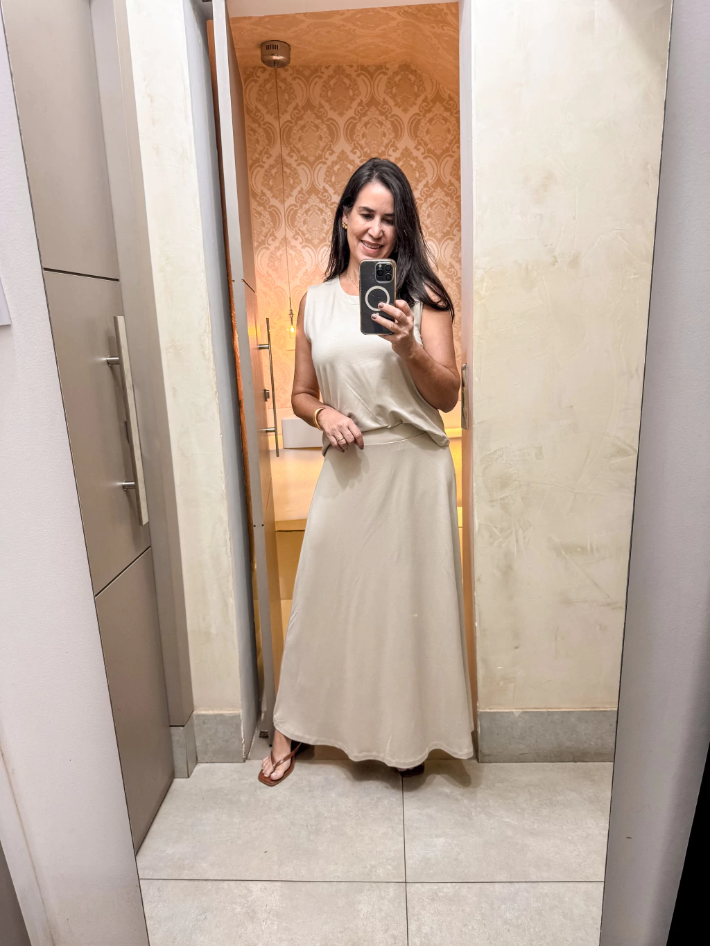 CONJUNTO CLARISSA é a pedida ideal para quem procura um look que multplica produções. A blusa tem alças largas que pode ser usada com sutiã, além de shape soltinho ao corpo. Acompanha saia com elástico no cós para um melhor ajuste e melhor adapatabilidade a diferetens tipos de corpo. A saia de comprimento mídi proporciona visuais versáteis, te acompanhando em diferentes momentos do seu dia a dia.