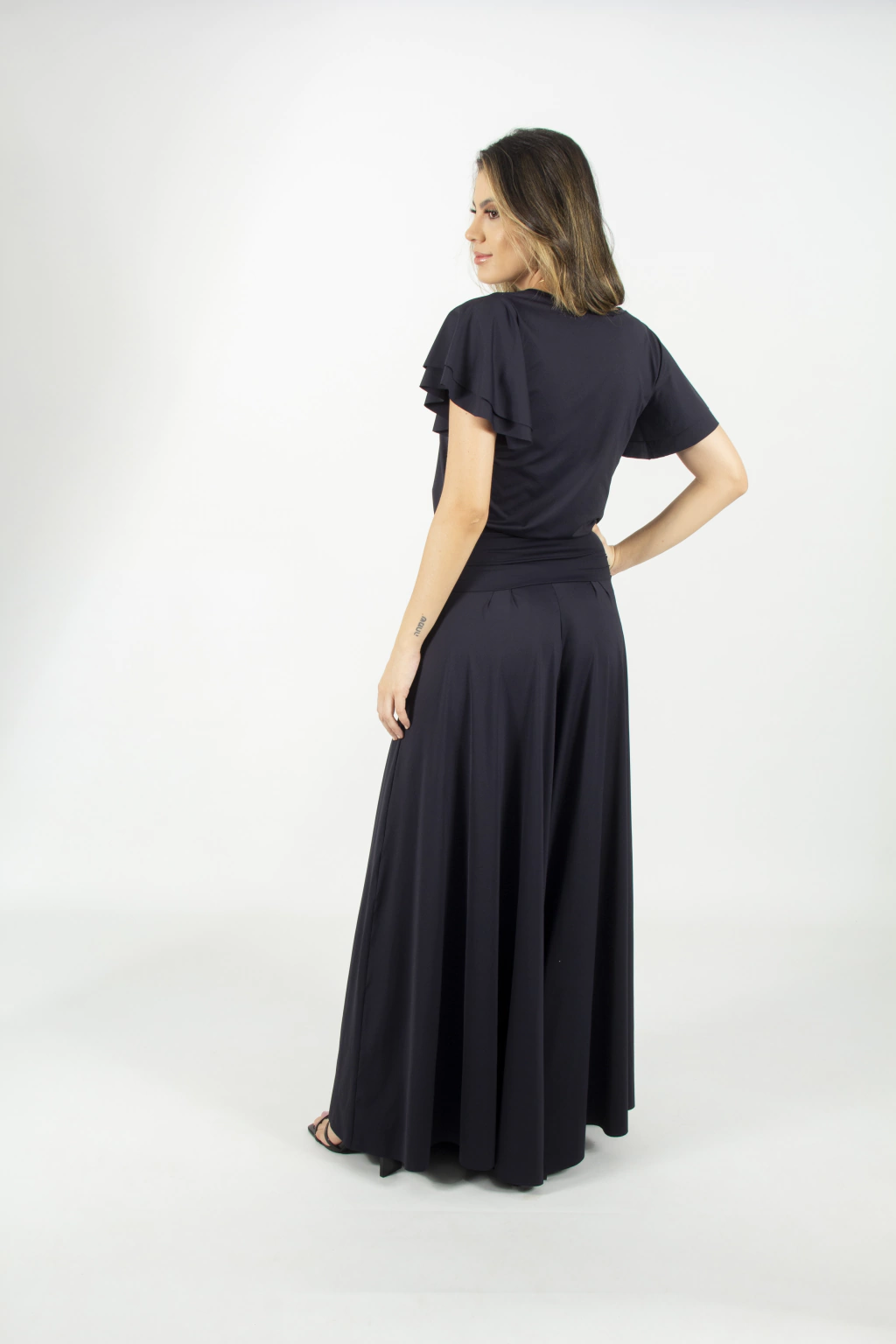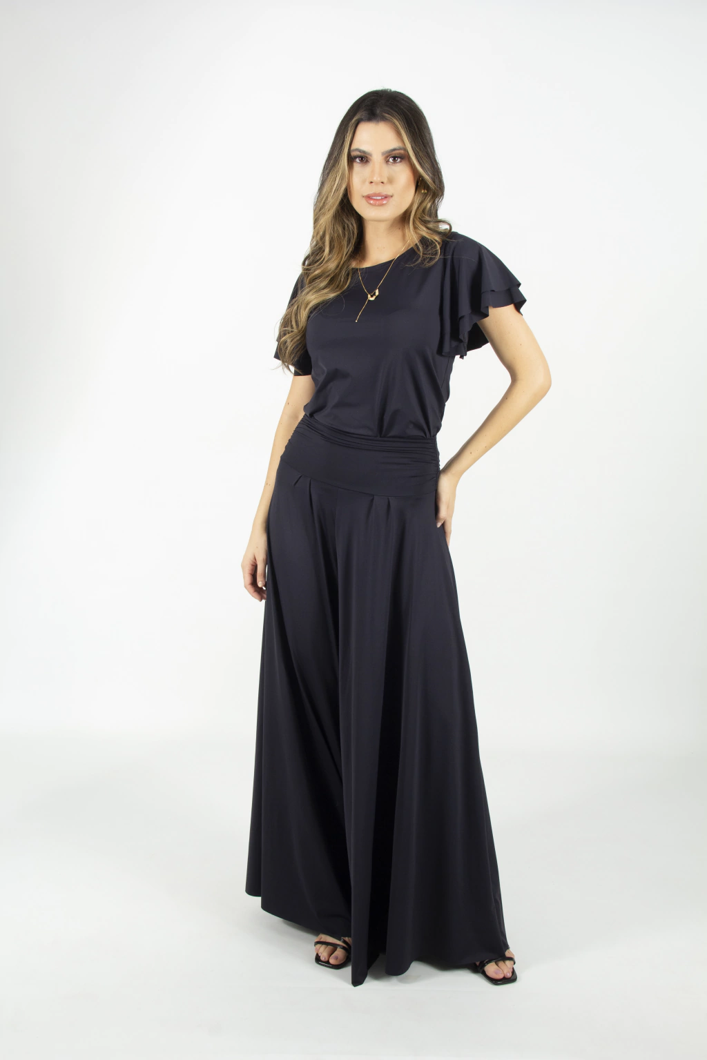 CONJUNTO MAÍZA é a escolha ideal para seu guarda-roupa. Com uma proposta moderna e sofisticada, este conjunto é perfeito para diversas ocasiões, desde um passeio casual até um evento mais formal. Feito na malha jersey de poliamida, o Conjunto Maíza proporciona maior frescor e conforto, permitindo liberdade de movimentos. Sua calça super pantalona com cós ajustável se adapta perfeitamente ao seu corpo, enquanto a blusa com gola redonda e manga em babados adiciona um toque de delicadeza ao look.