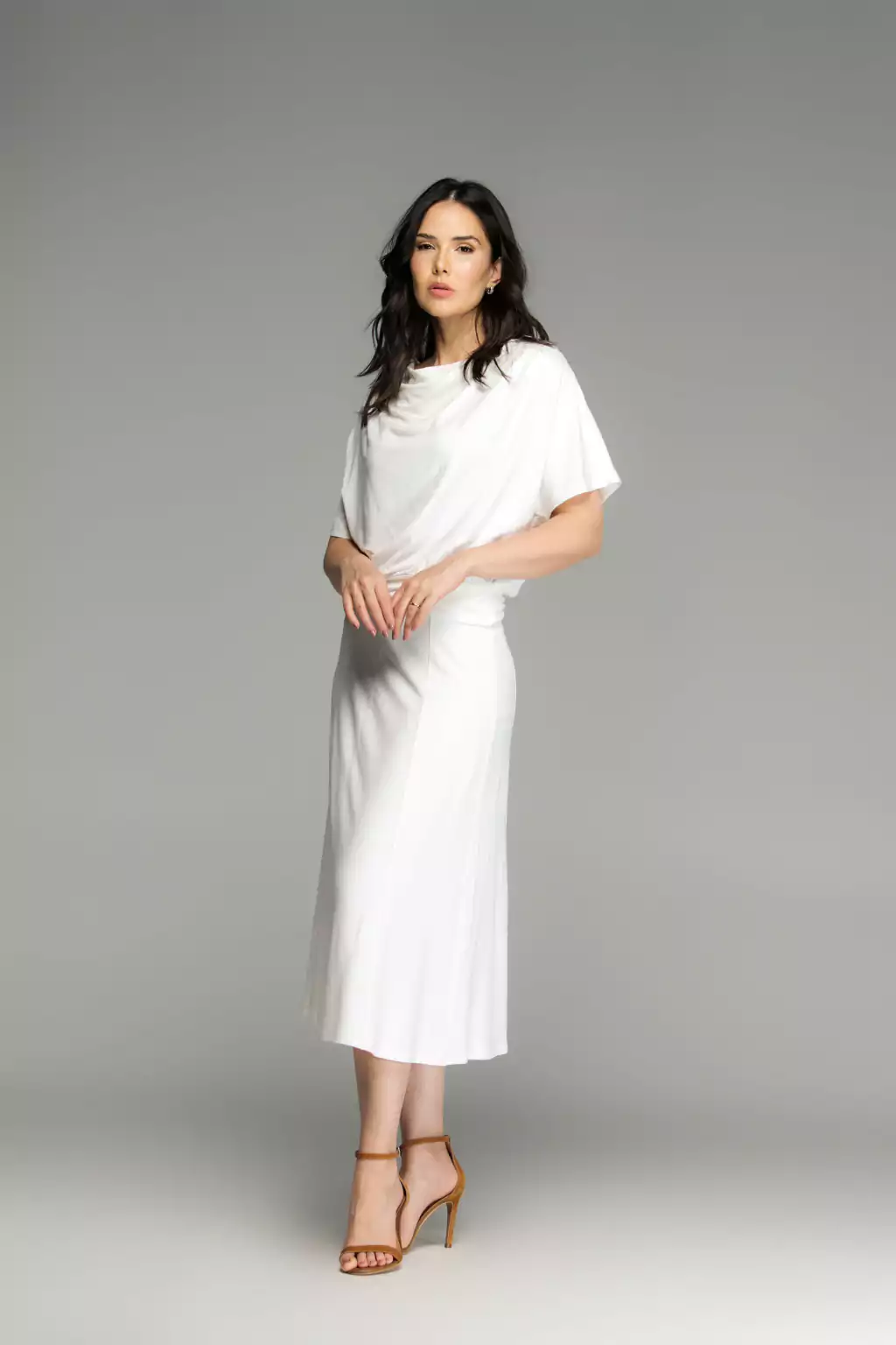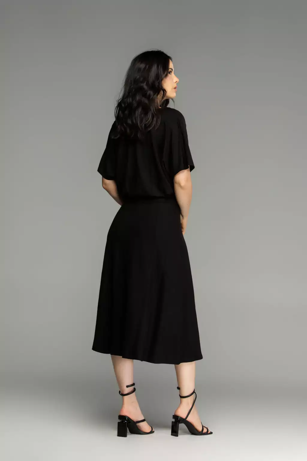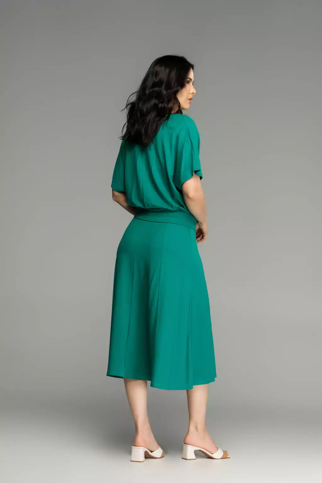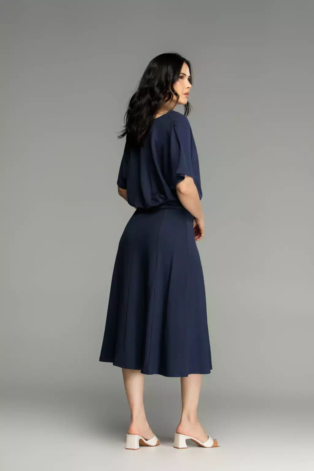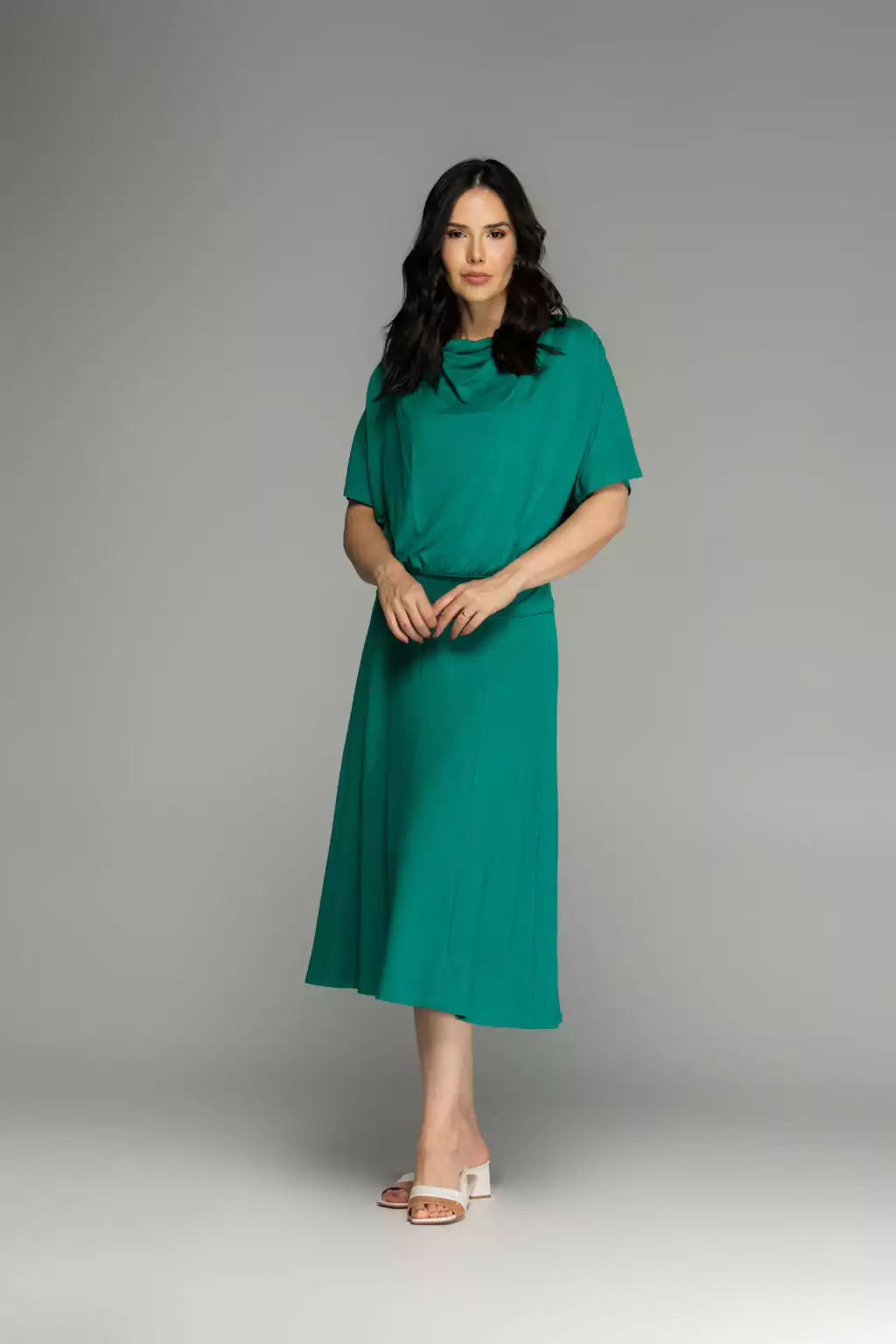 CONJUNTO NICE é a escolha ideal para quem busca um estilo que transita entre o casual e o sofisticado. Feito em moletinho premium, conta com gola drapê, mangas tipo japonesa, modelagem soltinha e detalhe em punho no cós. Já a saia tem compimento midi, modelagem evasê, detalhes em nesgas e síper na lateral para melhor ajuste.