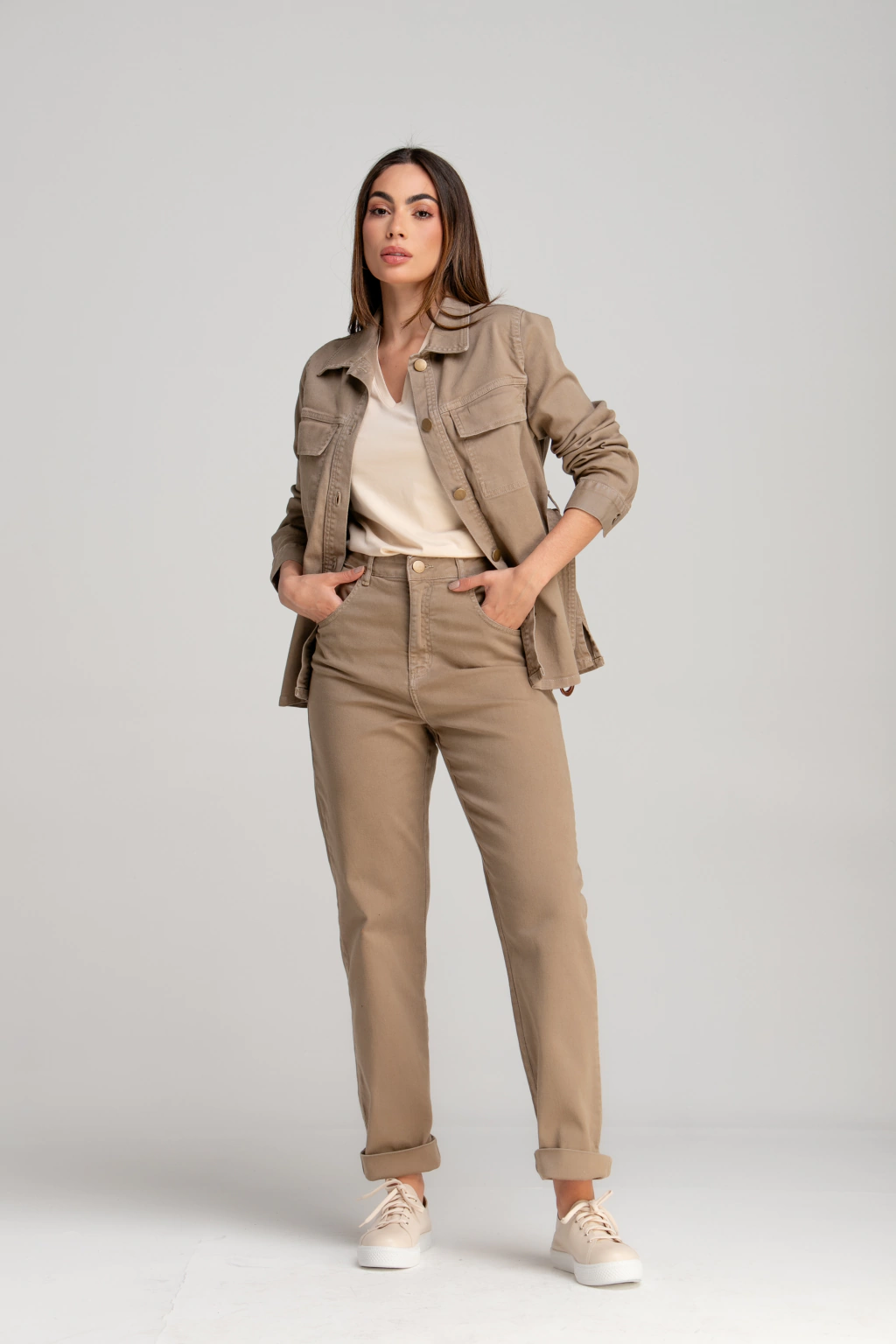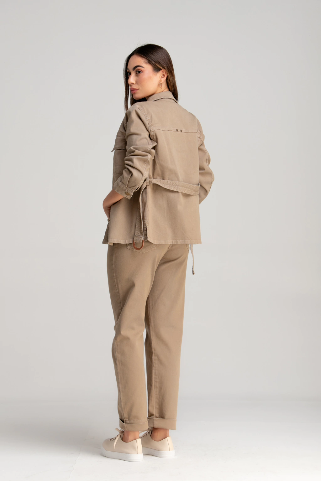 JAQUETA MANU garante visuais incríveis e cheios de estilo. Com comprimento médio, ela acompanha cinto do próprio tecido com detalhe em fivela que valoriza a silhueta. Além disso, conta com abotoamento frontal e bolsos que proporcionam um visual despojado.