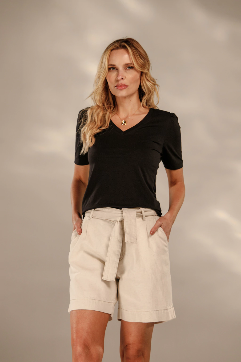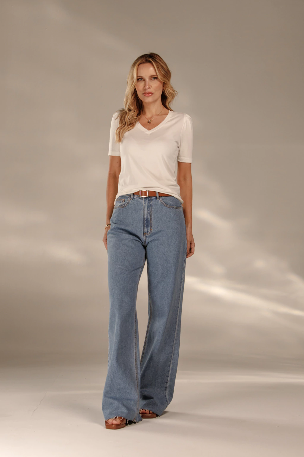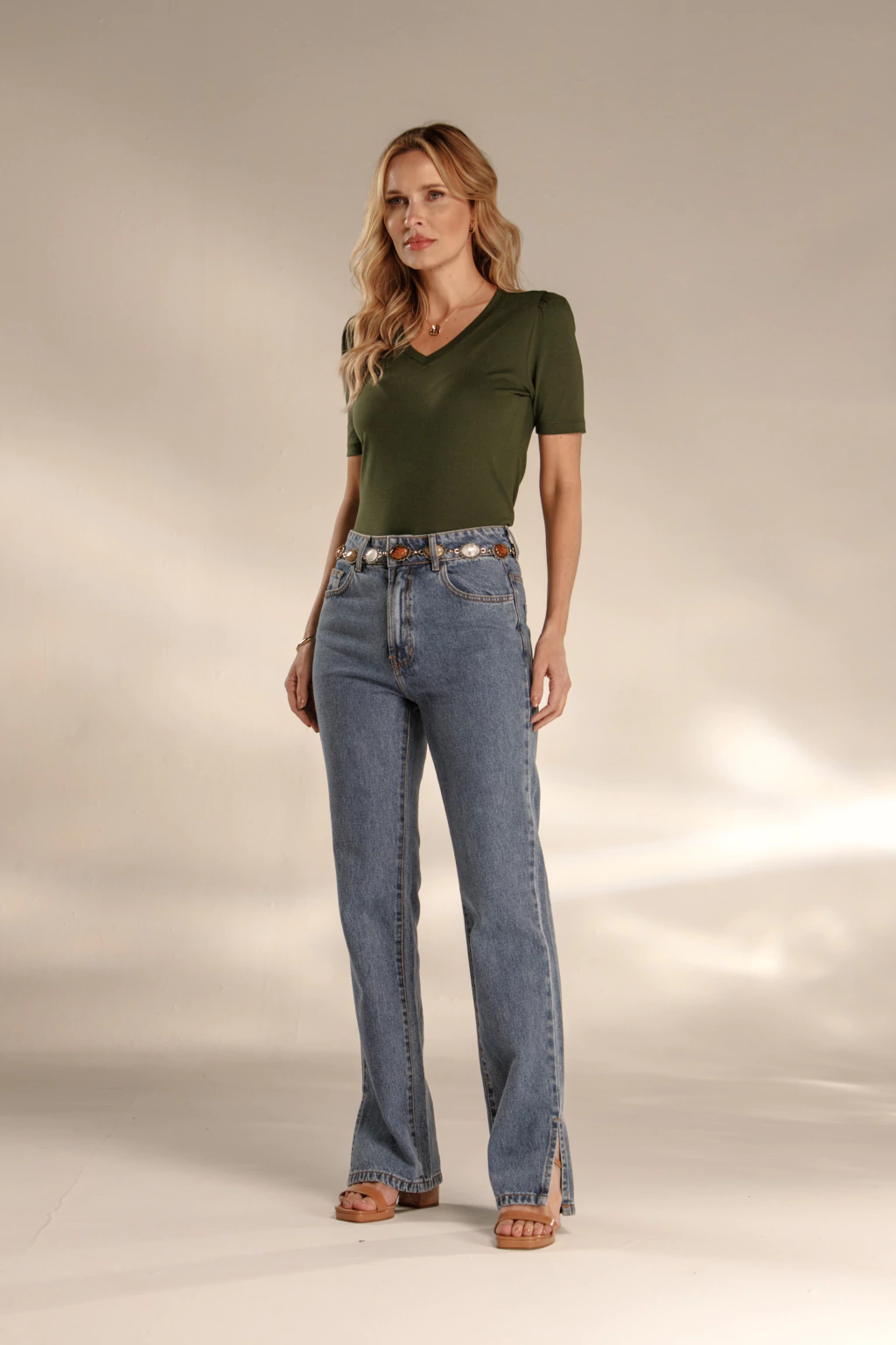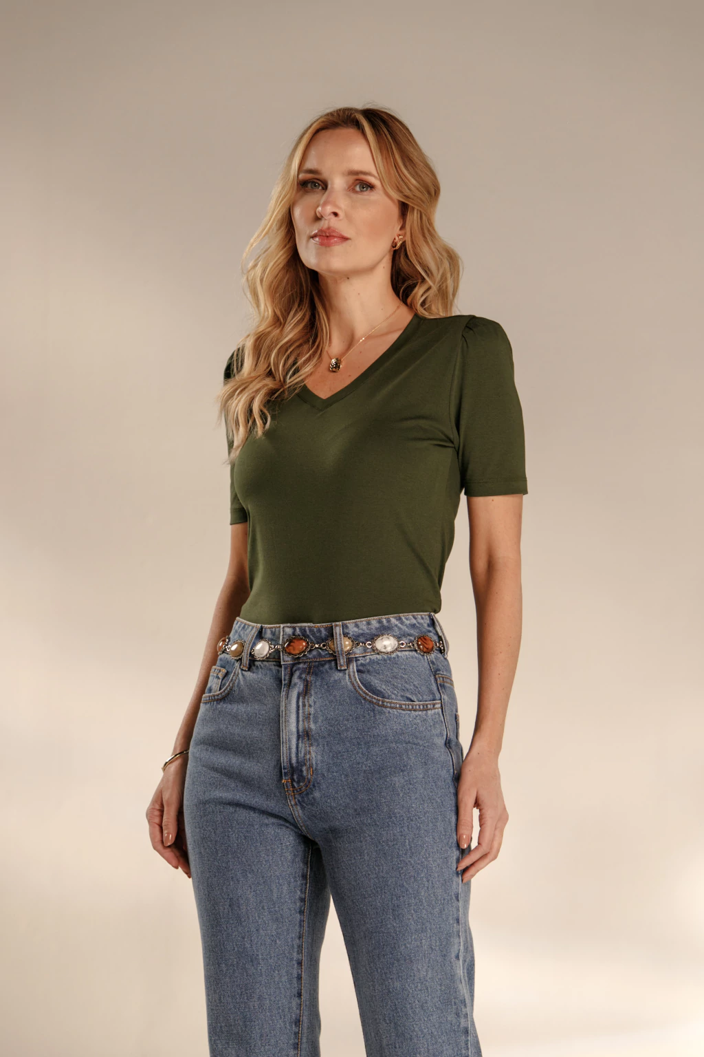 CAMISETA KATRINY é a definição de essencial com sofisticação. Presente nas coleções LV há mais de cinco anos, ela é feita em malha de algodão egípcio — uma fibra nobre que garante durabilidade, respirabilidade e um toque extremamente macio ao vestir. Sua modelagem slim valoriza a silhueta sem apertar, enquanto o decote V e as mangas médias estilo puff trazem charme e feminilidade à peça. É uma camiseta curinga para compor produções que vão do casual chic ao trabalho, e uma excelente base para sobreposições e acessórios. Atemporal, confortável e refinada, é daquelas que você vai querer em todas as cores.